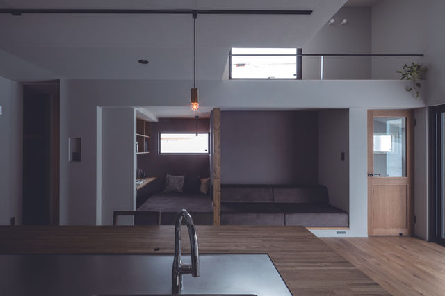 吹抜のあるリビングには、